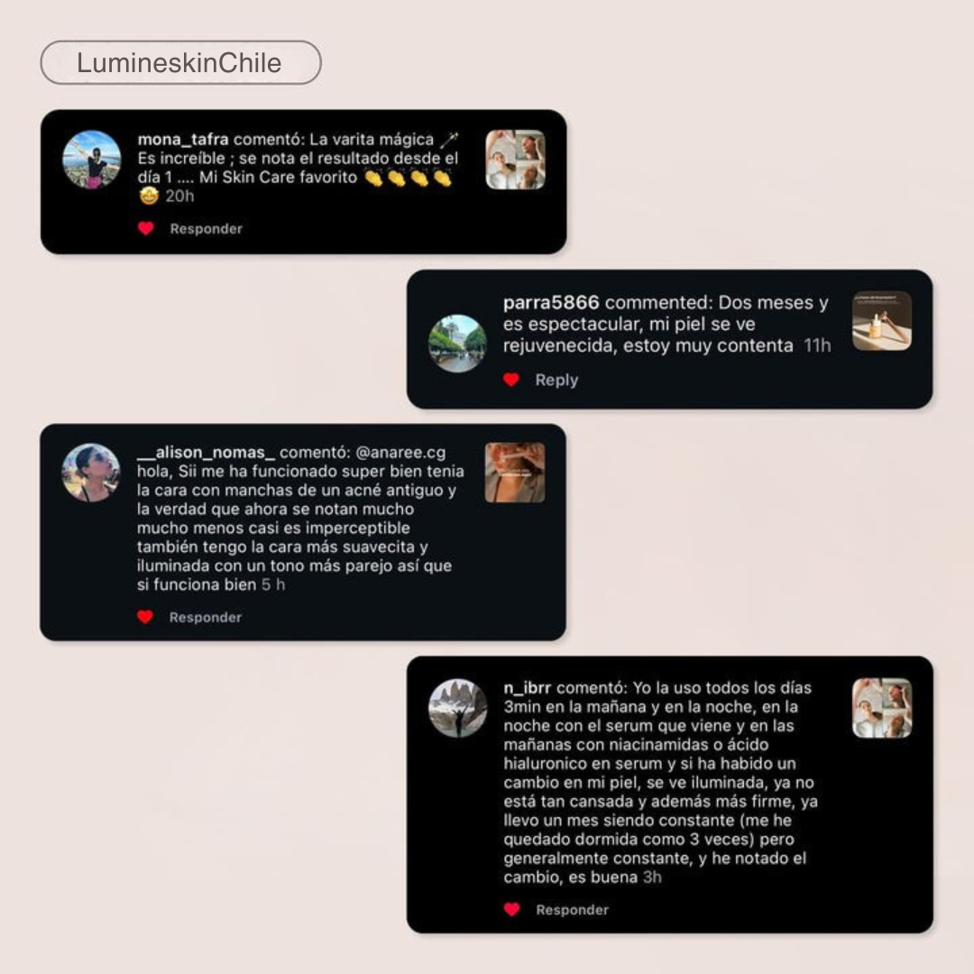 Con el uso constante del masajeador de luz LED roja, la piel comienza a renovarse desde la primera semana. A las 6 semanas, clientes han informado lo siguiente: