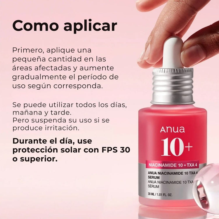 La combinación de Niacinamida 10% + Ácido Tranexámico 4% ayuda a mejorar visiblemente el tono y la apariencia de marcas, para que tu piel se vea más clara, equilibrada y segura día a día.